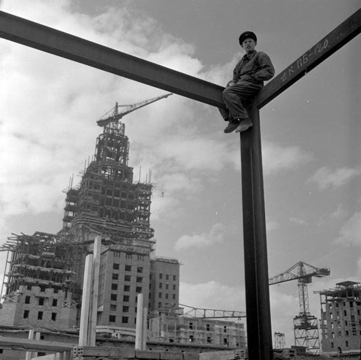 Строительство нового здания МГУ. Начало 1950-х. Автор: Яков Халип
