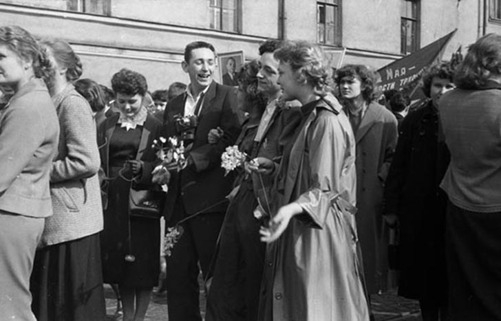 Студенты Ленинградского института киноинженеров. На первомайской демонстрации. Конец 1950-х. Автор: Лев Шерстенников