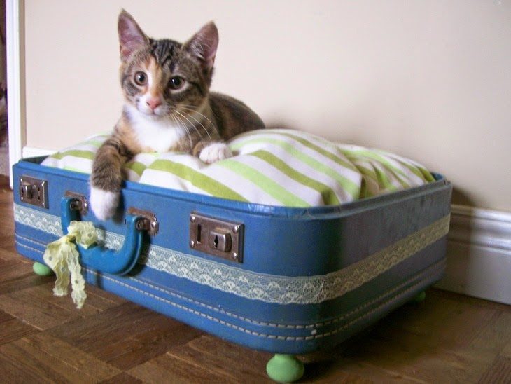 Например, если приделать к чемодану ножки или колёсики, то получится удобная прикроватная тумба. А если снять с него верх, и положить внутрь чемодана мягкую подушку, то и кот будет более чем доволен новой лежанкой.