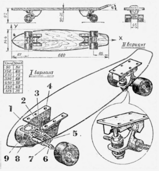 в 82 году приобрел скейт во Львове.сделан он был основательно, но мгновенно сносились резиновые упорные втулки. заказал на заводе такие же из фторопласта, эти оказались вечными. с особым удовольствием посылал нах совков, которые лезли с нравоучением, что в моем возрасте (34) на скейте кататься неприлично! а еще скейт пригодился при перемещении мебели, когда переезжал!