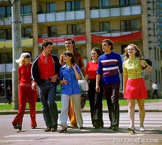 Два слова, неизменно ассоциировавшиеся с модой того периода – «дефицит» и «блат». Привезенные из-за рубежа вещи можно было купить в одном из магазинов «Березка» или в сотой секции ГУМа – однако эти места были открыты лишь для чиновников и партийных деятелей. Обычные люди пытались найти качественную одежду на толкучих рынках, а многие специально ездили в портовые города – Владивосток, Калининград, Одессу, Ленинград. Иностранцы, продавая одежду, увозили из России икру и золотые украшения. В особом почете были финские сапоги, которые в Советском Союзе меняли на водку.