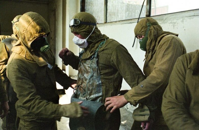 10 тысяч рентген в час — такой фон был на крыше станции, где были разбросаны выброшенные взрывом куски графита и металлической сборки из реактора (около 300 тонн). Это самый высокий фон, при котором работали ликвидаторы, безопасным считается уровень радиации до 50 микрорентген в час Очищали крышу солдаты-срочники. В условиях такого высокого радиационного фона можно было работать максимум 30-60 секунд. Солдаты работали в свинцовых доспехах толщиной в 2,5 мм. Говорят, что срочникам, участвовавшим в расчистке крыши, давали по 1000 рублей и отпускали домой, несмотря на оставшееся до дембеля количество дней.2 300 км