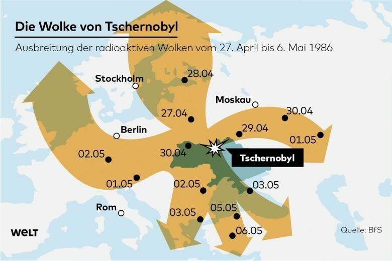 На 2300 км от Чернобыля отнесло радиоактивное облако. Радиоактивные дожди прошли в Шотландии, Уэльсе, Норвегии.