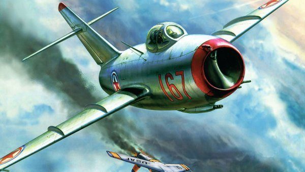 (МиГ-15 — советский истребитель, разработанный ОКБ Микояна и Гуревича в конце 1940-х годов. Наиболее массовый реактивный боевой самолёт в истории авиации)