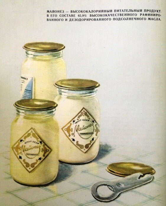К майонезу питали пиетет и трепетную слабость. Когда рухнул железный занавес и в постсоветских магазинах некогда дефицитный продукт появился в изобилии, многие ели его уже не баночками, а ведерками, щедро намазывая прямо на хлеб. Правда, вкус уже был не такой, как когда-то в советские годы, ведь современные технологии предполагают использование стабилизаторов, усилителей вкуса, крахмала и прочего. Чтобы почувствовать классический вкус, придется приготовить соус самостоятельно.Советские люди ценили майонез и за вкус, и за полезность. Баночки майонезные не выбрасывали, а использовали повторно. Например, ими можно было запросто заменить стакан для автомата с водой или использовать, как контейнер, для хранения продуктов в холодильнике. Еще одно предназначение баночки – сдача анализов. Именно такую тару рекомендовали использовать в поликлиниках, так что в каждом доме несколько баночек про запас всегда имелось.