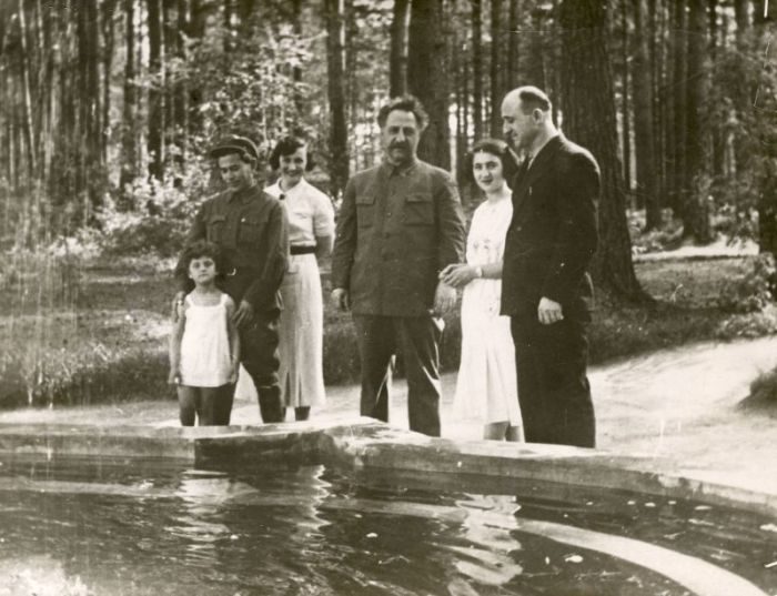 Николай Ежов (слева) с супругой Евгенией Хаютиной, приемной дочерью Наташей и Григорием Орджоникидзе (в центре)