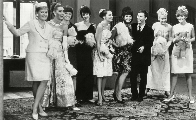 Модельер Вячеслав Зайцев с манекенщицами, 1965 год.