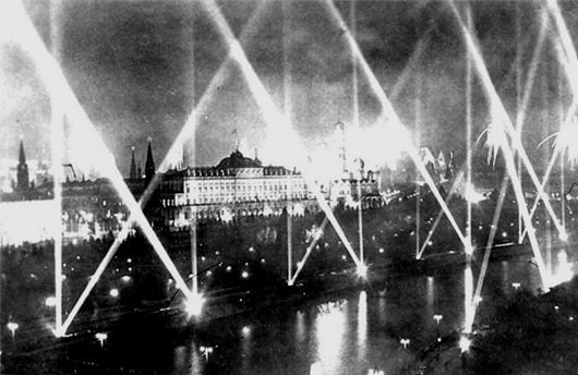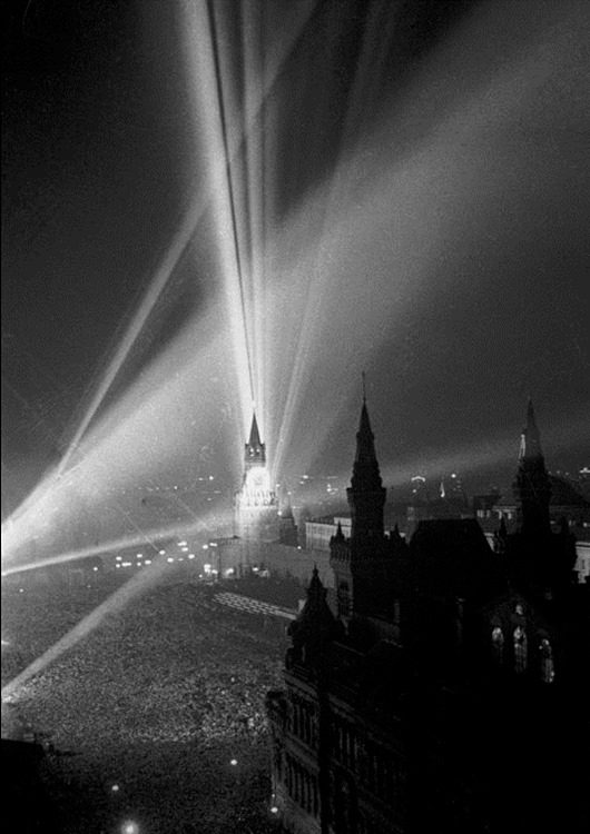 В 21 час с обращением к советскому народу выступил председатель Совета Народных комиссаров Иосиф Сталин. В 22 часа был произведен салют 30 артиллерийскими залпами из 1000 орудий. После салюта десятки самолетов сбросили над Москвой гирлянды разноцветных ракет, на площадях вспыхивали многочисленные бенгальские огни…