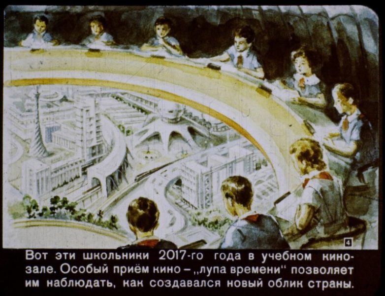 Так создатели диафильма «В 2017 году» представляют интерактивное обучение для школьников. Виртуальная реальность отдыхает.
