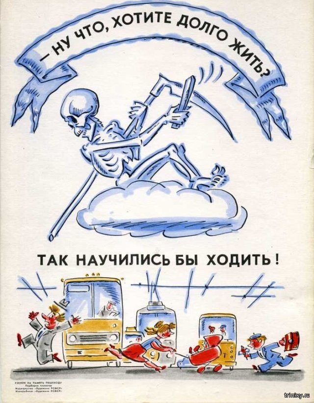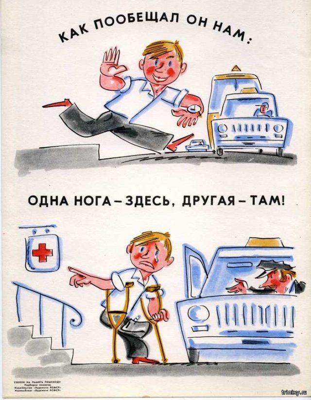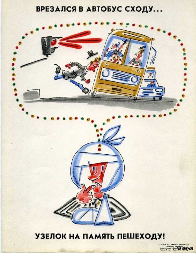 Столько лет прошло, а ситуация не меняется. Перед вами советские плакаты, которые предупреждают людей о беде, которая может произойти, если несерьезно относиться к ПДД. Сборник называется: «Узелок на память пешеходу» и, пожалуй, актуален он будет всегда.