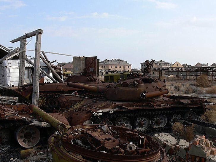 В начале 1990-х после распада СССР военные бросили в аральских песках и город, и полигон.
