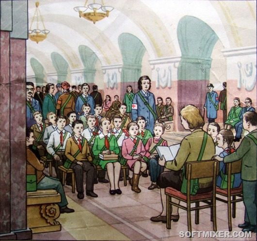 В нашем г. Городке есть метро! Вот это новость! Жалко, что о нем никто не знает, иначе бы папа не ездил на свой завод в переполненном трамвае. Противогазы наготове. Учительница читает сказку. Лица спокойны, но, как сказал бы Скульптор, полны внутренней энергии и динамики. Взрослые застыли в неестественных позах.
