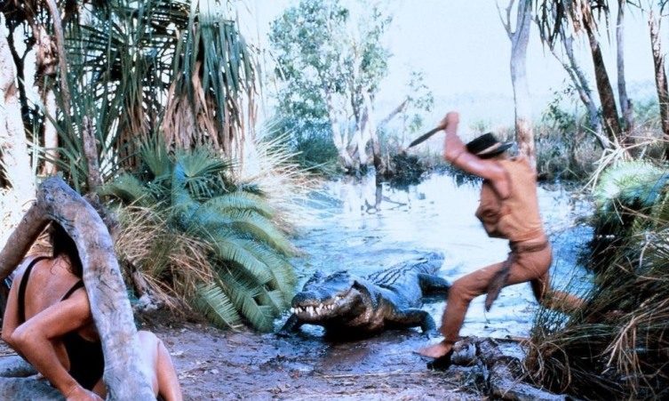 Нож ножом, а крокодил, который напал на актрису Линду Козловски в сцене у реки, точно не угрожал ее жизни. И не потому, что за ней по пятам следовал ее будущий муж Пол Хоган в образе неотразимого Данди. Нет. Просто крокодил был механический и обошелся продюсерам в 45 тысяч долларов. Хоган мечтал о настоящем хищнике для ближних планов, но это было невозможно устроить.