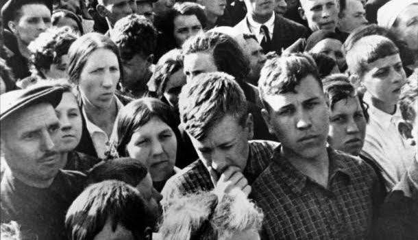 Граждане СССР слушают сообщение о нападении фашистской Германии на Советский Союз