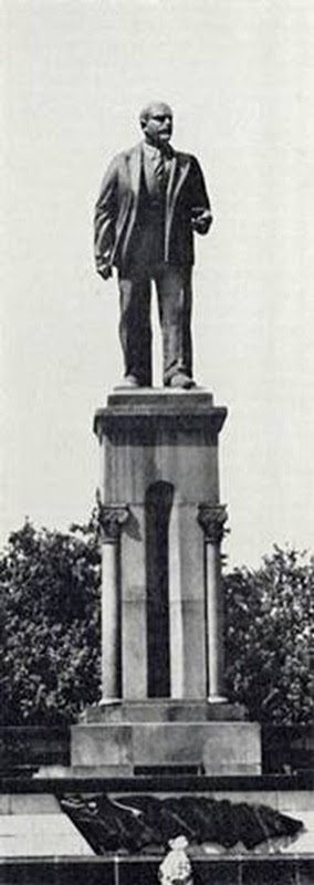 Ну и конечно же, как подобает главной подобает главной площади столицы союзной республики, на этой также стоял памятник тов. В.И. Ленину, вот он.