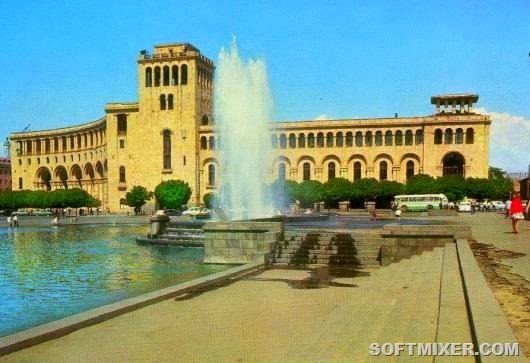 Перед зданием Музея истории Армении стоят легендарные «поющие» фонтаны, одновременное меняющие свой цвет.» Но это уже в наши дни.