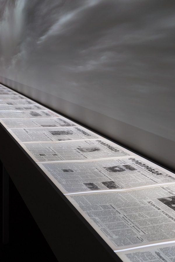 Художница объединила 20 оцифрованных передовиц газеты — с 26 апреля по 15 мая 1986 года — и поместила их в лайтбокс. Светящиеся копии страниц обозначают 19-дневный разрыв между датой крупнейшей за всю историю атомной энергетики аварии и официальным сообщением о ней. В последней газете приведен текст официального телеобращения главы государства Михаила Горбачева к советским гражданам, сделанного 14 мая. Медленно движущиеся радиоактивные облака на видео несут угрозу далеко за пределы зоны бедствия.