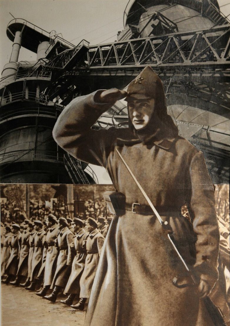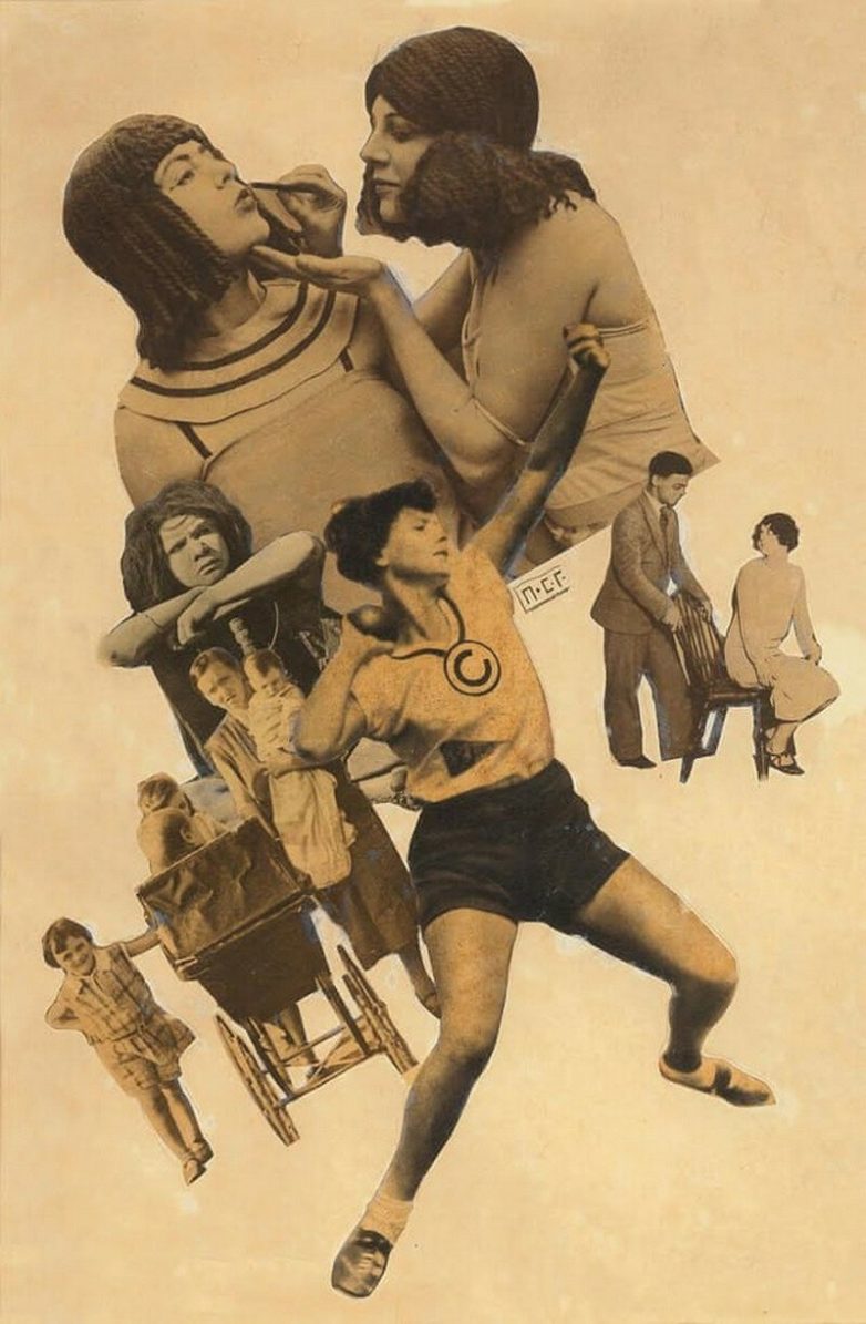 Пётр Галаджев (1901-1971) известен в большей степени как кинематографист и художник, но не упомянуть его, как мастера одного из раннесоветских течений фотоколлажа было бы нечестно. Окончивший курсы ВХУТЕМАСа, но ещё не нашедший окончательного пристанища в кинематографе, Галаджев создавал коллажи созвучные духу времени. Эпоха экономической свободы НЭПа ещё допускала известную фривольность, которая нашла своё отражение в работах, разительно отличавшихся от куда более политизированных коллажей других современников – Соломона Телингатера и Варвары Степановой.Коллаж с девушками, спортсменами и клоунами (1924)
