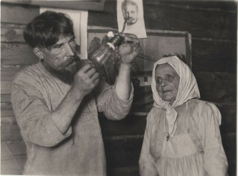 Ещё один классик (1898-1961) фотографии, чей авторитет по сей день остаётся непререкаемым, а фотографии узнаваемыми и востребованными, как иллюстрации раннего периода советской эпохи. Если некоторые фотографы, избрав стиль и источник вдохновения, привязывались к жанровым и географическим координатам, то Шайхет как будто успевал быть везде. Вот он следует за фининспектором в квартиру к зажиточной нэпманше, а вот свободно заходит в крестьянскую избу, вот снимает прибытие даже по нынешним меркам футуристического экспресса, а вот уже демонстрирует зрителю ясли под открытым небом. Снимки Шайхета в некоторой степени менее эмоциональны, но они добиваются эффекта вовлечения не благодаря эмпатии зрителя к героям, но благодаря необычности схваченных мастером сюжетов.Лампочка Ильича (1925)