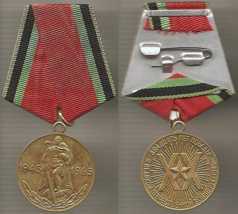 7 мая 1965г. Указом Президиума Верховного Совета была учреждена юбилейная медаль в ознаменование двадцатилетия победы над фашистской Германией в Великой Отечественной войне 1941-1945гг.