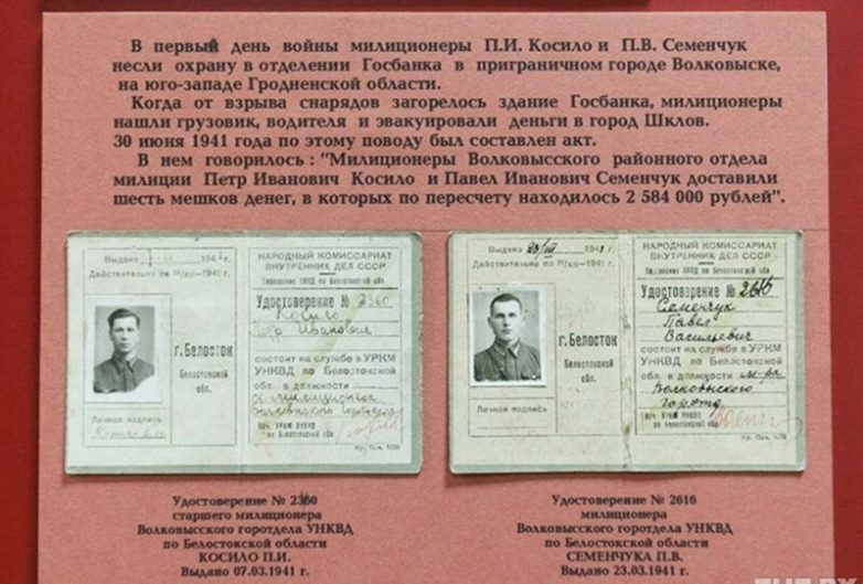 На шестой день скитаний под бомбежками голодные, но в самом высоком смысле выполнившие долг до конца Петр Косило и Павел Семенчук сдали наконец ценный груз в Шкловское отделение Госбанка. При пересчете и приеме денег оказалось, что в мешках находится 2 миллиона 574 тысячи рублей – просто огромная по тем временам сумма. О чем был составлен акт, который всю войну хранил старший милиционер Косило, а ныне он находится в фондах музея.