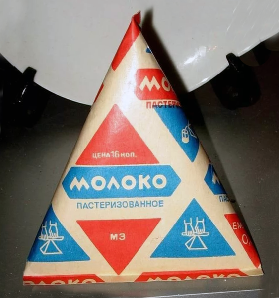 В начале 60-х в Союз пришла новая молочная упаковка – «Tetra Pack» в форме «пирамидка». В такой таре донести купленное молоко до дома было тоже проблематично. Причина? Низкое качество упаковки, а также небрежное обращение с ней со стороны грузчиков и работников торговых точек. Бывало так, что на прилавки магазинов многие молочные «пирамидки» попадали уже худыми. Но это-то ладно. Хуже было когда купишь молоко в такой упаковке, а оно у тебя в сумку протечет. Таким образом лишаешься и молока и все остальное, что в той сумке лежало может быть испорчено.