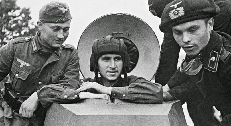 Забавно, что сами потомки тевтонов от танкошлема отказались и войну начали в аляповатых беретах огромных размеров.