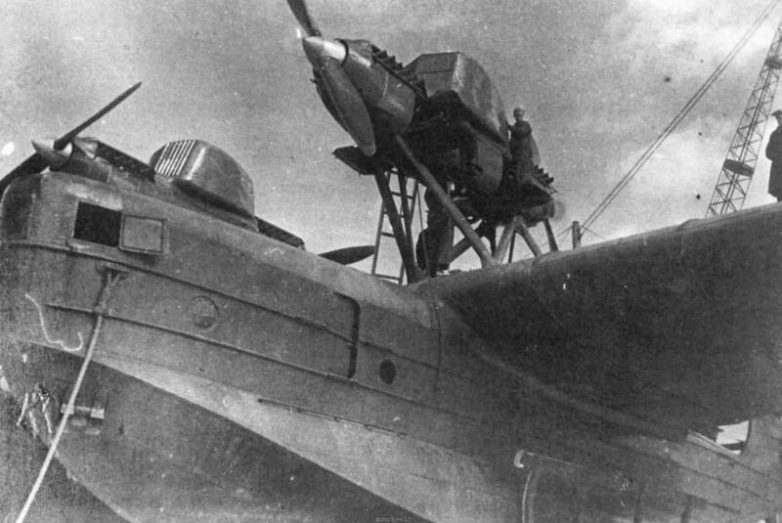 Отечественный проект в сравнении с итальянским, конечно, поражал масштабами. «Морской крейсер» должен был брать на борт не менее 6 тонн бомб и торпед, размах крыла планировался в 50 метров, а совокупная мощность шести двигателей М-34Р конструкции Микулина составляла 4950 л. с. В ЦАГИ справедливо решили, что для постройки такого гиганта можно воспользоваться наработками по сухопутному бомбардировщику ТБ-3. Было позаимствовано четырехлонжеронное крыло (с доработками) и мотогондолы. Двигатели располагались тремя тандемными парами друг за другом на специальных пилонах. Передние моторы вращали двухлопастные деревянные тянущие винты, а расположенные позади приводили, соответственно, толкающие винты. Выбор такой конструкции был обусловлен прежде всего снижением лобового сопротивления в полете. Однако в этом была одна из основных ошибок конструкторов – толкающие винты во время полета находились в спутной струе тянущих и они резко теряли в эффективности. В дальнейшем планировалось заменить невысотные двигатели М-34Р на более мощные с механическим нагнетателем М-34РН или М-34ФРН, но после испытаний самолета от этой идеи отказались. Чтобы обеспечить заявленный тысячекилометровый полетный радиус, в четырех топливных баках хранилось 9,5 тысячи литров авиационного керосина.