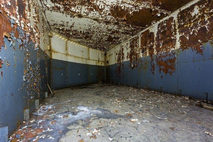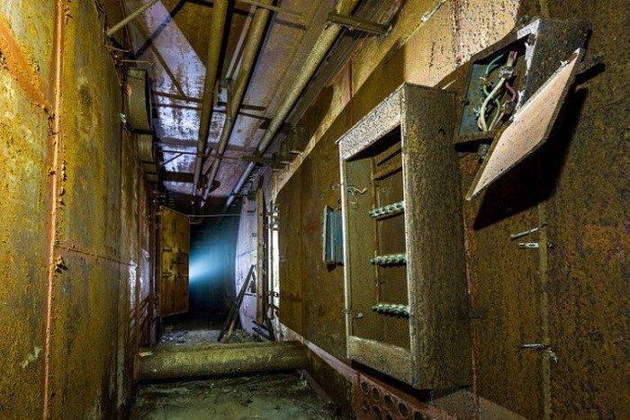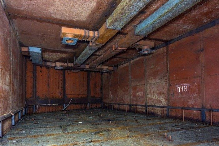 Бункер внутри — громадный железный монстр, размеры которого просто не укладываются в голове. Пол, стены, потолок — все поверхности покрыты рыжим от ржавчины металлом. Бункер не успели достроить и оснастить, поэтому внутри нет абсолютно ничего, кроме пустых коридоров, массивных гермодверей, больших и малых вентиляционных труб и коробов.
