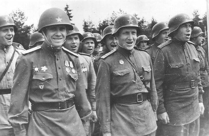 Кто объяснит — что за странное фото — вроде наши солдаты — но каски немецкие… и звёзды какие-то странные...??