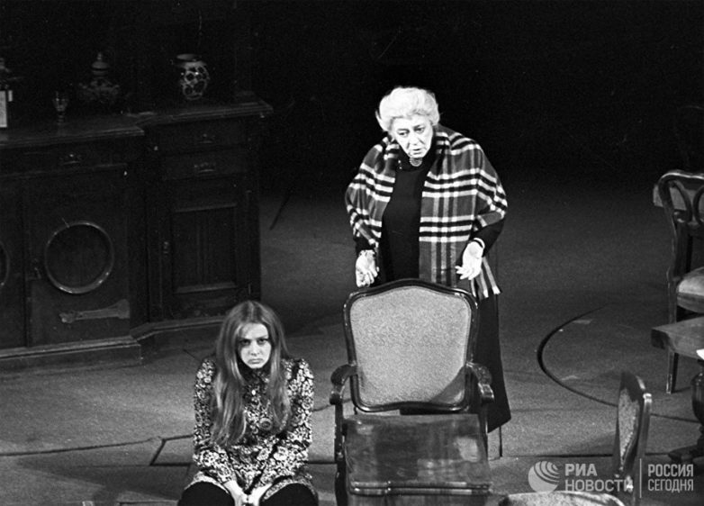 Маргарита Терехова в роли Люси и Фаина Раневская в роли Роды в сцене из спектакля по пьесе Вина Дельмара „Дальше — тишина“. Государственный академический театр имени Моссовета. Март 1970 года. Фото Александра Гладштейна /РИА Новости/