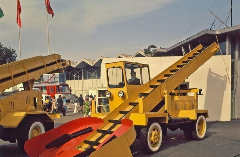 КО-203 на выставке. Слева от него в кадре виднеется фрезерный снегоочиститель УП-66, выпускавшийся тем же самым Свердловским заводом коммунального машиностроения на шасси ГАЗ-66 (фото из архива В/О «Автоэкспорт»).
