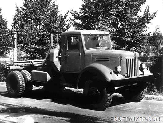 А еще через год на базе «двухсотых» были спроектированы и выпущены опытные образцы первых отечественных полноприводных грузовиков. Этим вездеходам был присвоен новый заводской индекс, начинающийся с цифры «5» (седельный лесовоз — МАЗ-501, бортовые грузовики для нужд армии — МАЗ-502 и МАЗ-502А с лебедкой на переднем бампере).