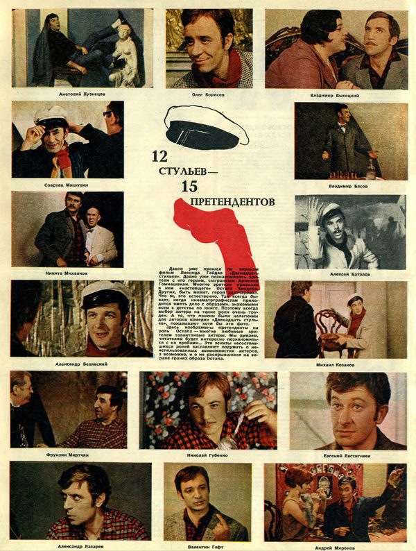 Гайдай принял подарок с воодушевлением: такой шанс выпадает раз в жизни. Картина, которой он бредил, невероятным кульбитом оказалась в его распоряжении. Он не знал, сколько препятствий еще выпадет на его пути к мечте. Как будет выбирать Остапа из чуть ли не двухсот кандидатов.