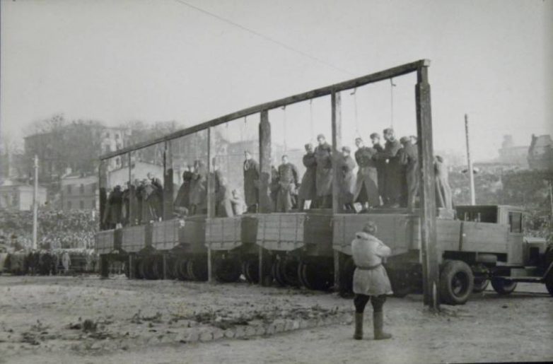 На казни полицаев из зондеркоманды присутствовало около 50 тысяч человек. Это была, пожалуй, первая столь крупная публичная казнь предателей в годы войны. Затем аналогичные процессы с публичным повешением военных преступников прошли в целом ряде других городов Советского Союза — в Киеве, Николаеве, Ленинграде.