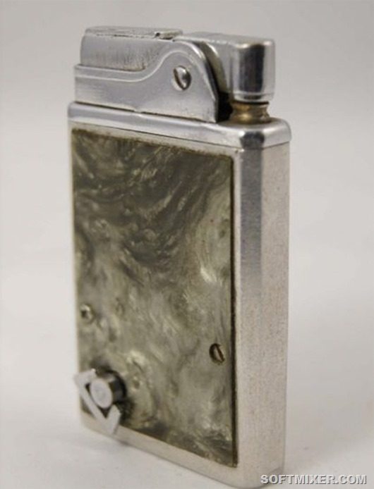 Карманная бензиновая зажигалка «Фото-молния». Вообще, зажигалки в виде фотоаппарата — популярная тема среди промышленных дизайнеров того времени.
