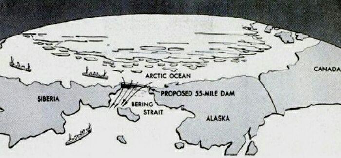 Что же касается дамбы, то проектированием этого грандиозного проекта действительно занимались в конце 1950-х. Автор разработки, советский инженер Петр Борисов считал, что человечество способно успешно управлять климатом на Земле и мечтал, чтобы в Якутии можно было «растить апельсины». Суть его идеи заключалась в том, что дамба перекроет не столько сам пролив, сколько холодное Анадырское течение, которое охлаждает теплый Гольфстрим как раз рядом с побережьем Чукотки. По расчетам Борисова, грандиозное сооружение длиной 86 км должно было полностью перекрыть доступ Анадырского течения на юг, что позволило бы Гольфстриму «подогреть» и Сибирь, и Аляску, и даже растопить ледники Канады.