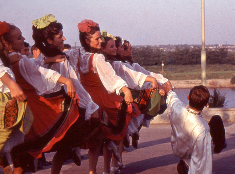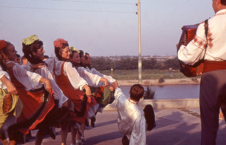 Тирасполь. Участники фольклорного ансамбля «Дружба» показывают на берегу Днестра молдавский народный танец.