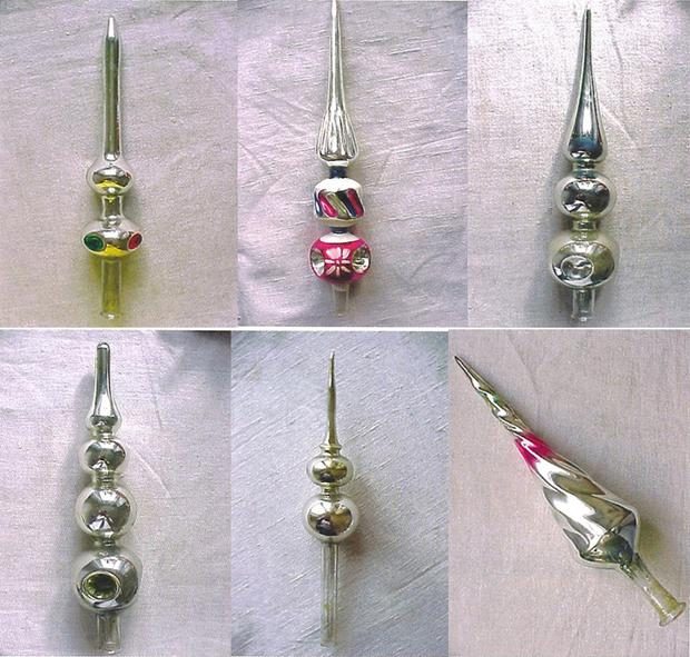 В те же годы начали делать стеклянные украшения в форме сосулек, шишек, пирамидок.