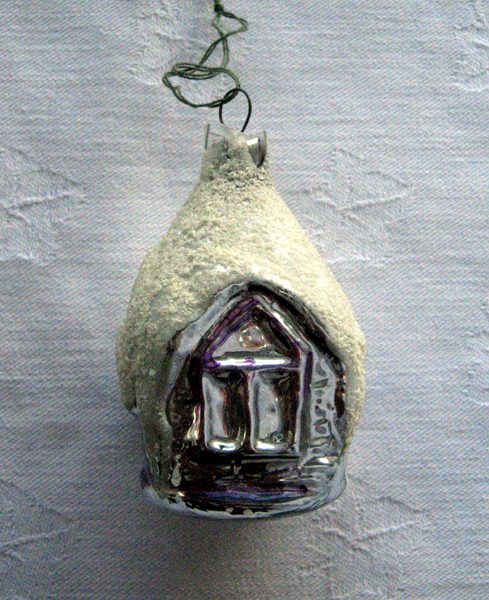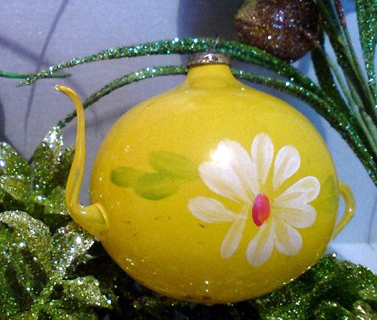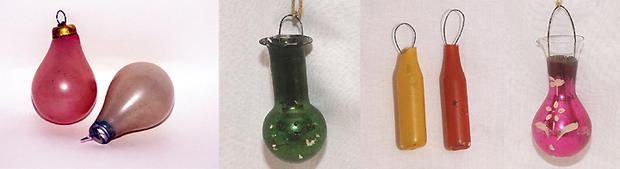 Чуть позже, в 1940-х годах, стали появляться елочные игрушки, изображающие предметы быта — чайники, самовары, лампы и др. «Их отличала текучесть формы и ручная роспись яркими красками».