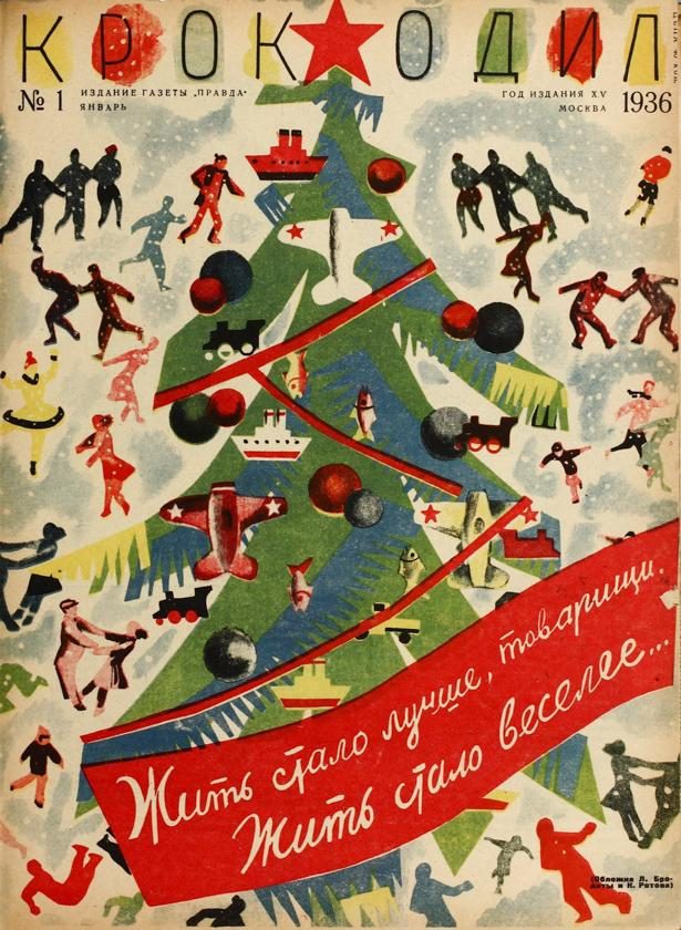 Новогодний номер «Крокодила» за 1936 год вышел с нарядной ёлкой на обложке и цитатой И.В. Сталина о том, что жить стало лучше и веселей. Естественно, граждане страны идею отмечать Новый год с радостью поддержали. Еще бы! Это был, пожалуй, единственный праздник без идеологической подоплеки, который объединял абсолютно всех.