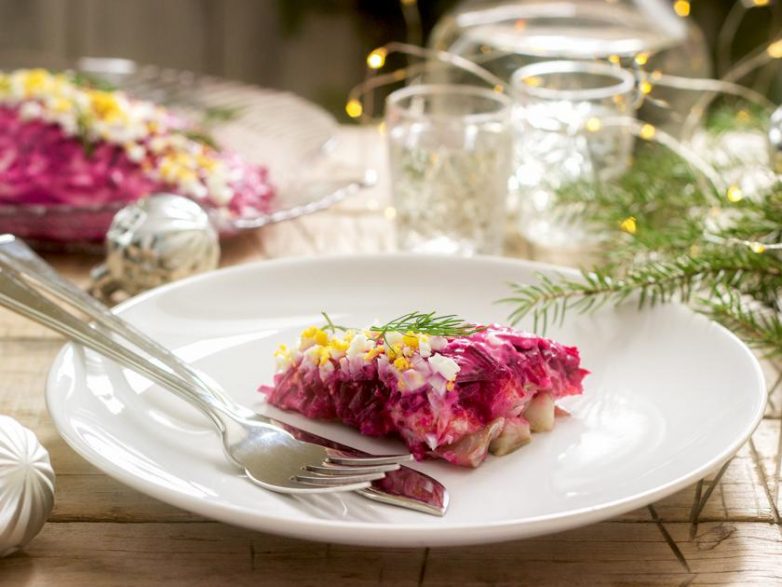 Советская новогодняя традиция рекомендовала иметь на столе не менее 12 блюд. Помимо салата оливье обязательным номером программы была селедка под шубой, чуть позже добавился салат «Мимоза», салат из печени трески (если удалось ее достать), непременно бутерброды с икрой, холодец, цыпленок табака. Холодец варили долго и мучительно.