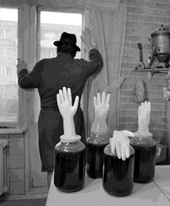 В конце 1980-х резиновые перчатки на банках с брагой, сдуваясь после готовности продукта и падая, как будто махали на прощание советскому строю