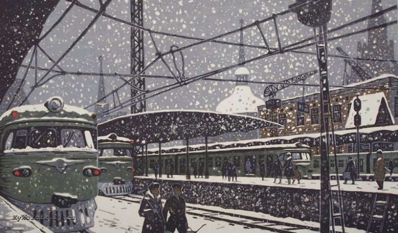 Железная дорога, поезда и вокзалы прошлого столетия в картинах мастеров соцреализма.