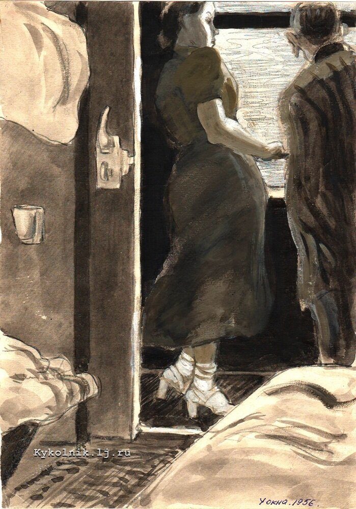 В будке машиниста, эскиз к мультфильму по рассказу Платонова «Машинист Мальцев»
