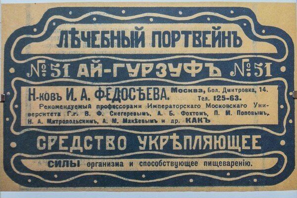 Лечебный Портвейн — конечно прикольно. Только судя по шрифту, он не имеет отношения к советскому прошлому. Да и указанная на этикетке рекламная надпись, «Рекомендует профессор ИМПЕРАТОРСКОГО УНИВЕРСИТЕТА, вряд ли бы приняло даже молодое советское государство, даже сразу же после своего появления.
