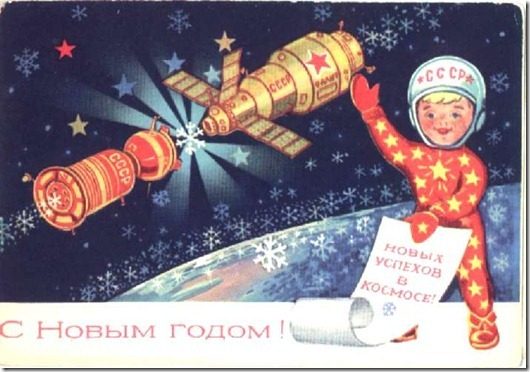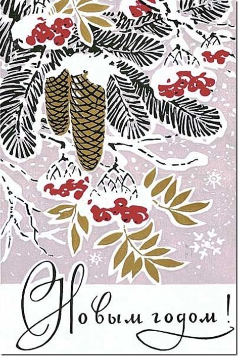 Подлинный расцвет советской новогодней открытки наступил в 60-х годах. Увеличилось количество сюжетов: появляются такие мотивы, как освоение космоса, борьба за мир. Зимние пейзажи венчали пожелания: «Пусть Новый год успехи в спорте принесет!».