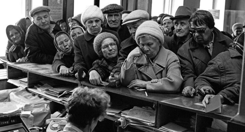 И никому ничего не было доступно, потому что были ничем не обеспеченные деньги — пустые бумажки. И поэтому всюду были очереди. И в них стояли отупевшие от лжи и безысходности люди