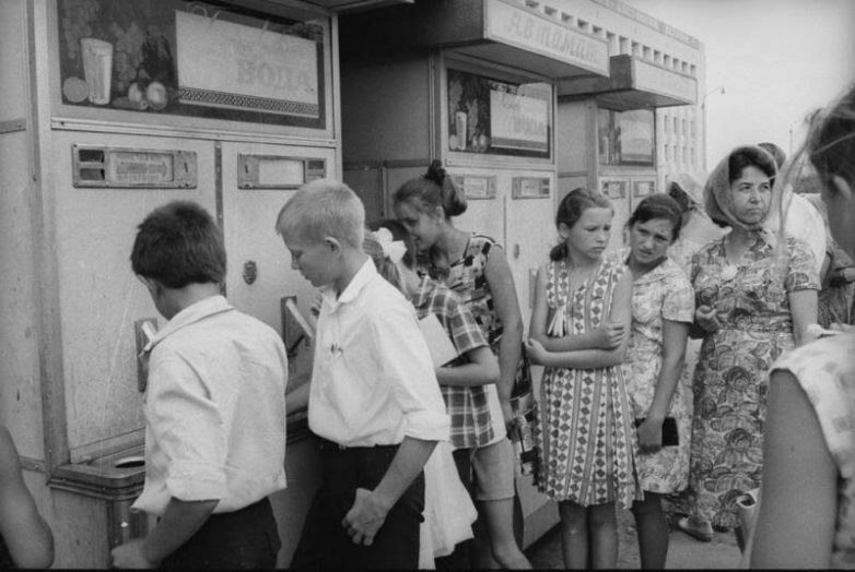 Перед автоматами с газированной водой, 1967 год. Тарасевич Всеволод Сергеевич
