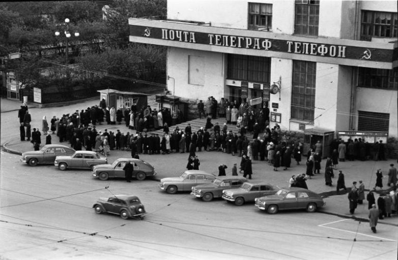 Почтамт. Очередь у газетного киоска, 1958 год. Тарасевич Всеволод Сергеевич